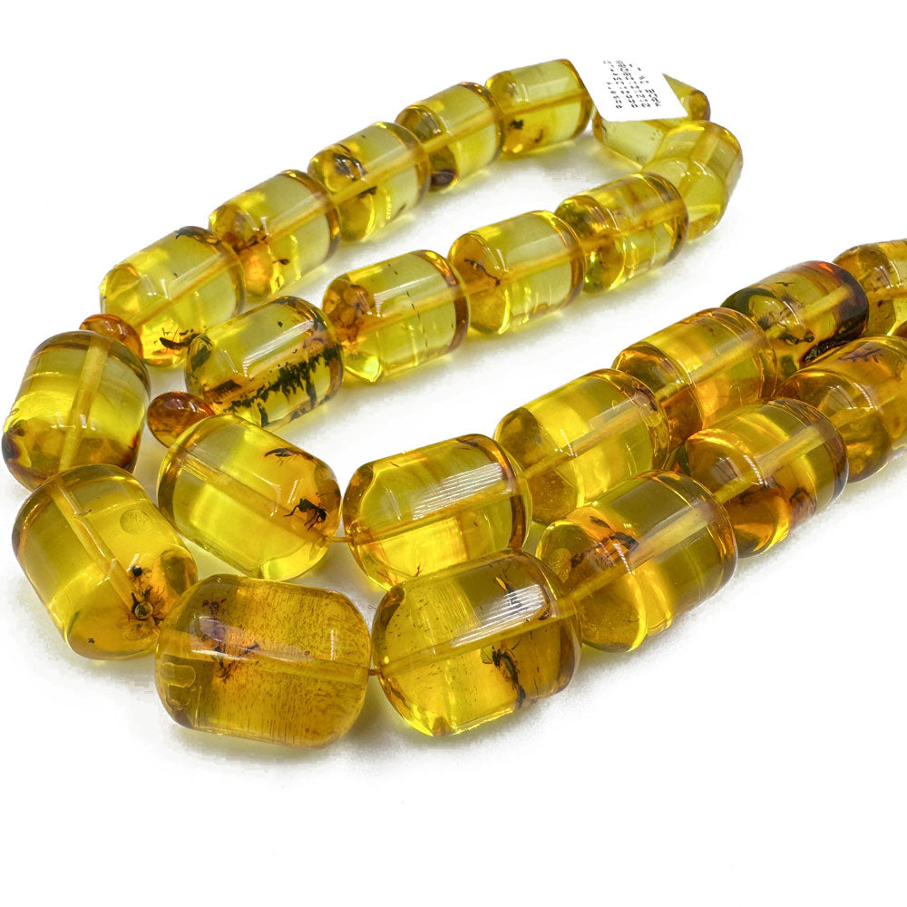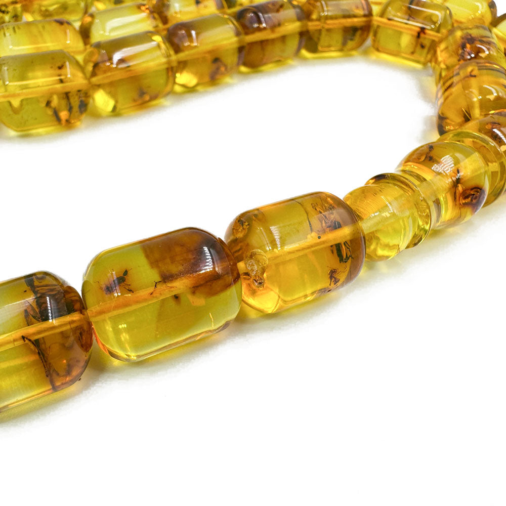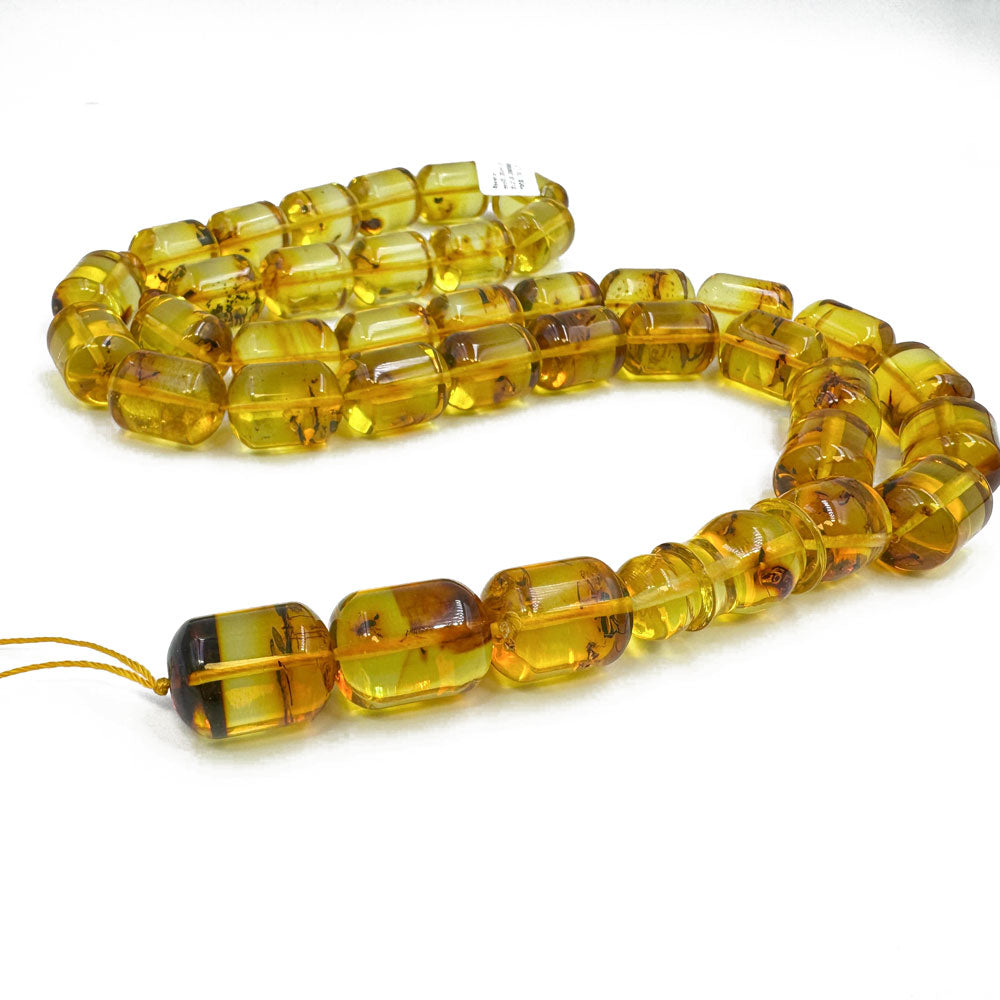 Natural Amber Barrel Shape 13.5 mm Islamic Prayer Beads With Insects