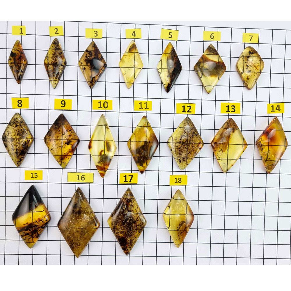 Fossil Baltic amber handmade rhombus shape cabochons  Genuine Baltic amber Flat bottom handmade rhombus shape Natural/ fossil color cabochons Various sizes The price given per unit...