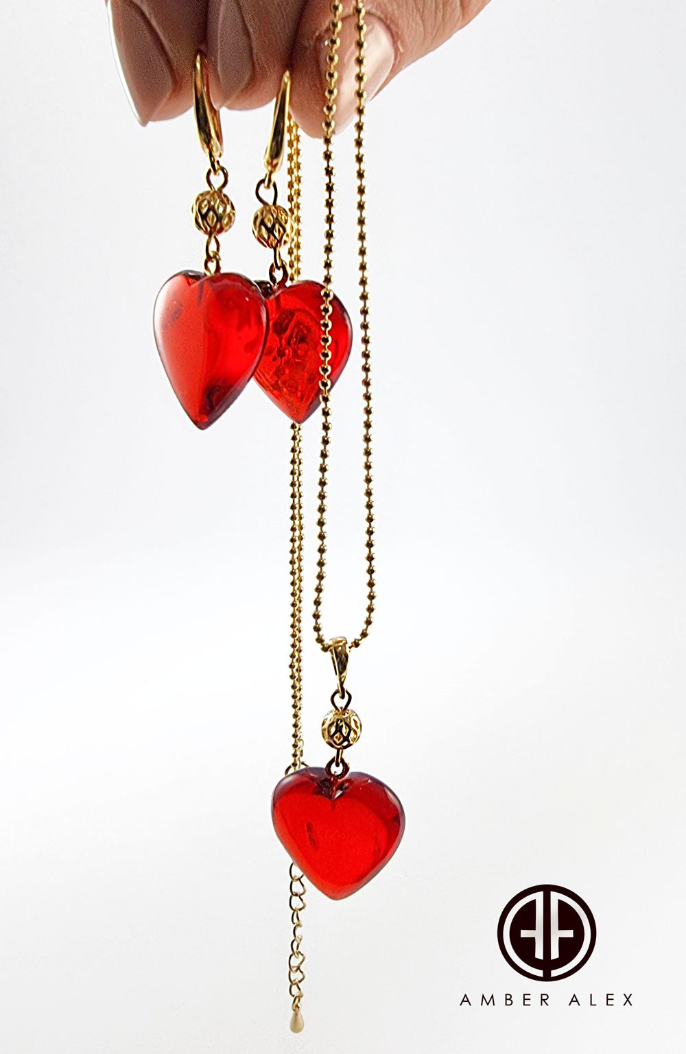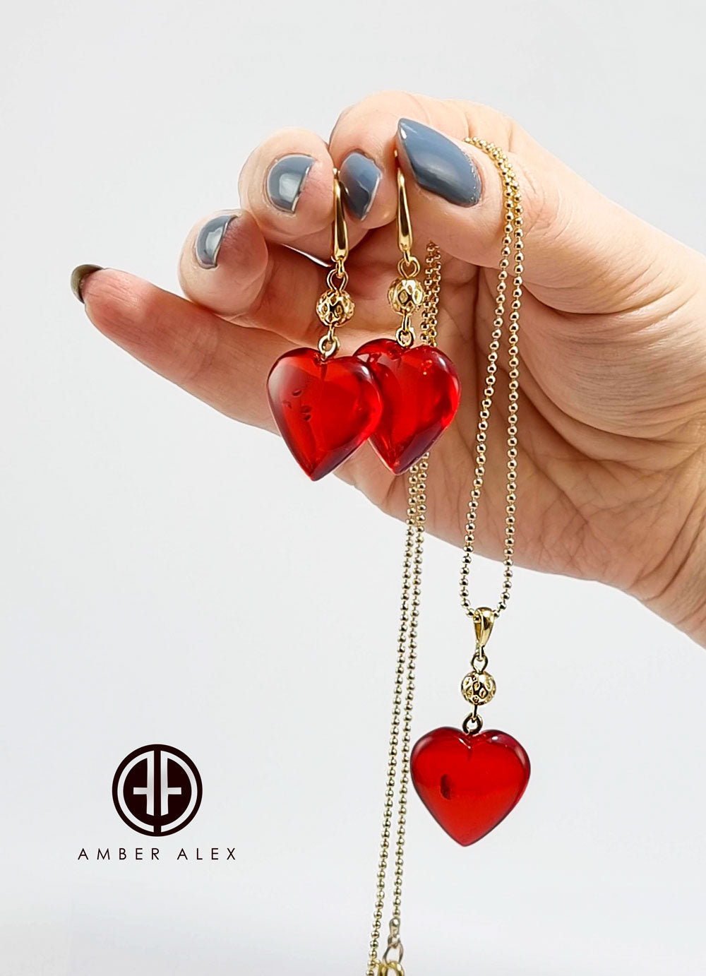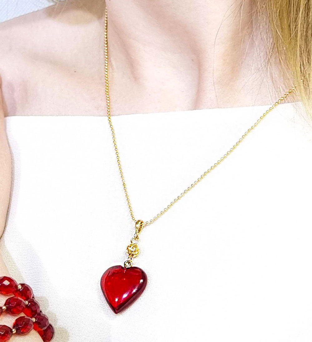 Brass metal chain, plated 14K Gold, with Red amber charm pendant.