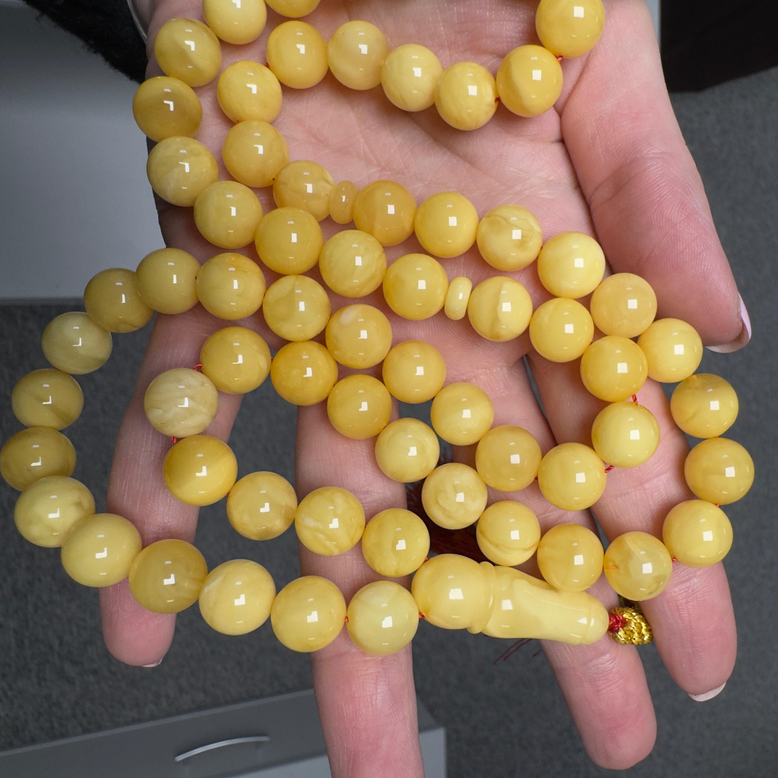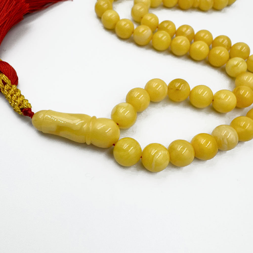 Natural Baltic Amber Yellow With White round shape 10.5 mm 66 beads Islamic Prayer Beads