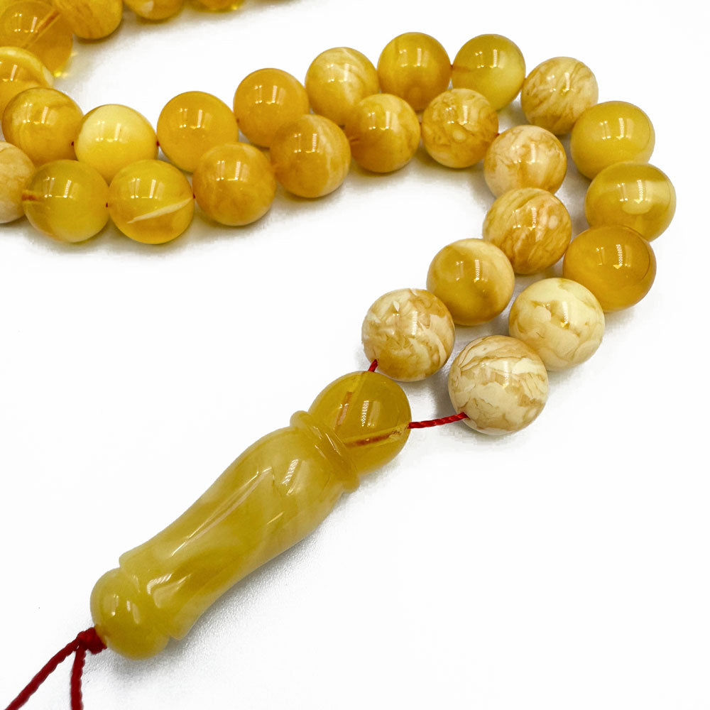 Natural Baltic Amber White With Yellow Color Round Shape 11.5 mm 66 beads Islamic Prayer beads