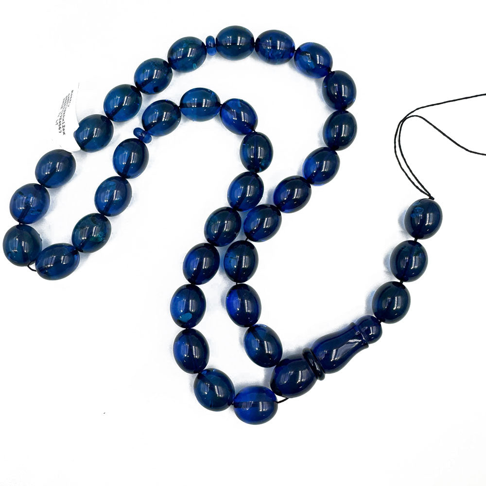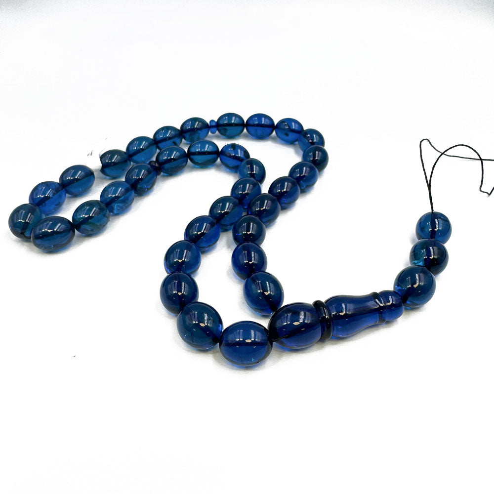 Natural Caribbean Amber Blue olive shape 12 mm Color Islamic Prayer 33+3 beads