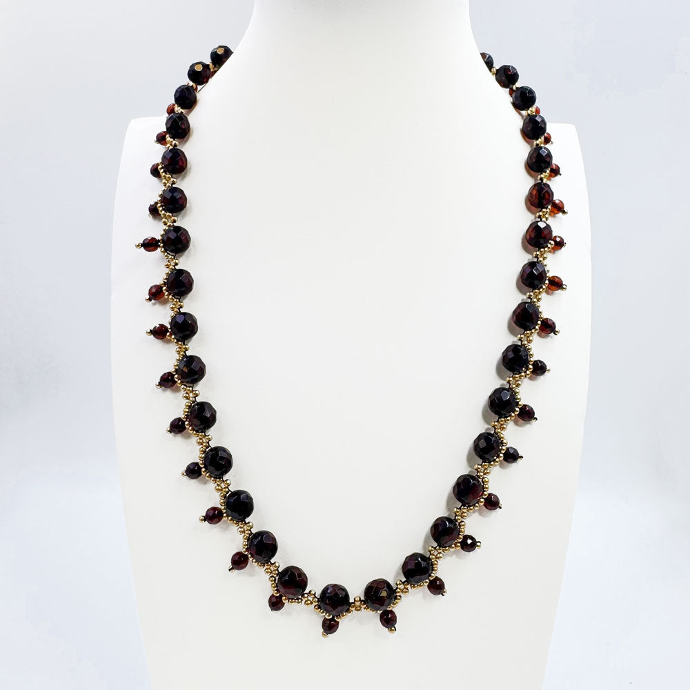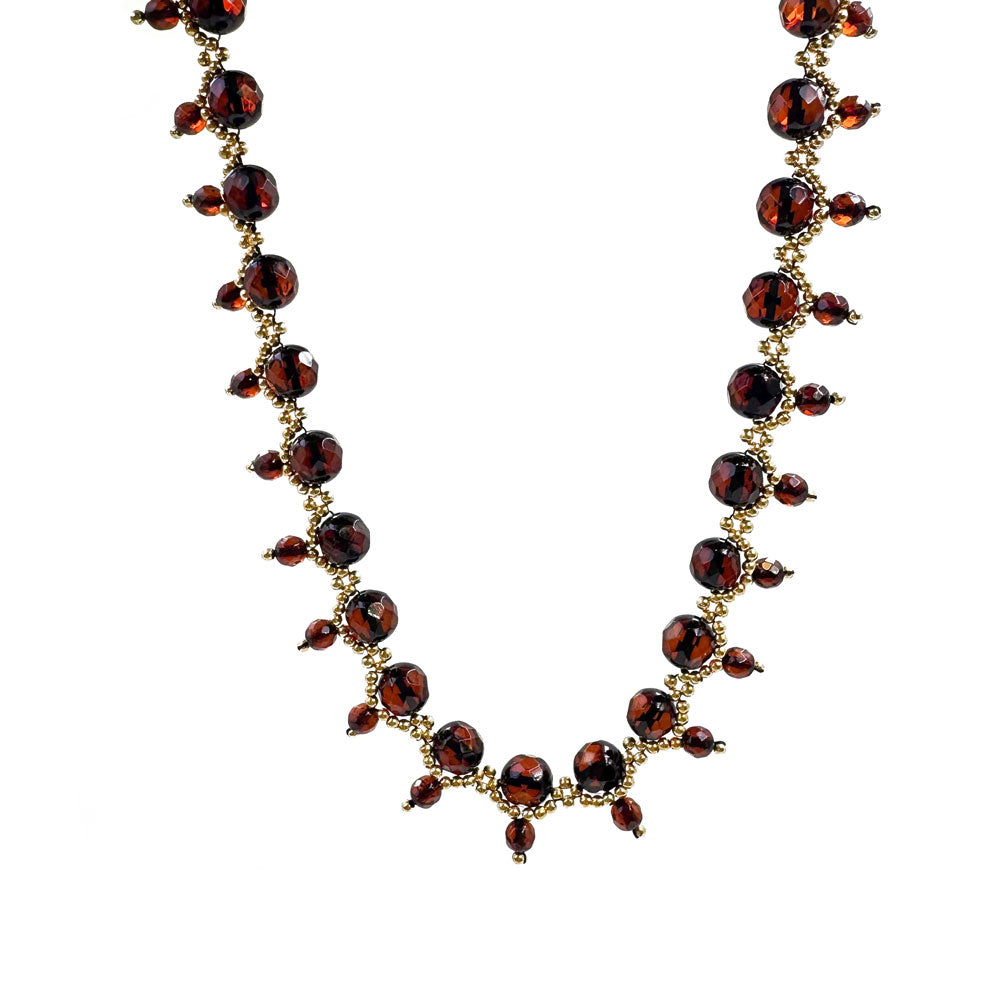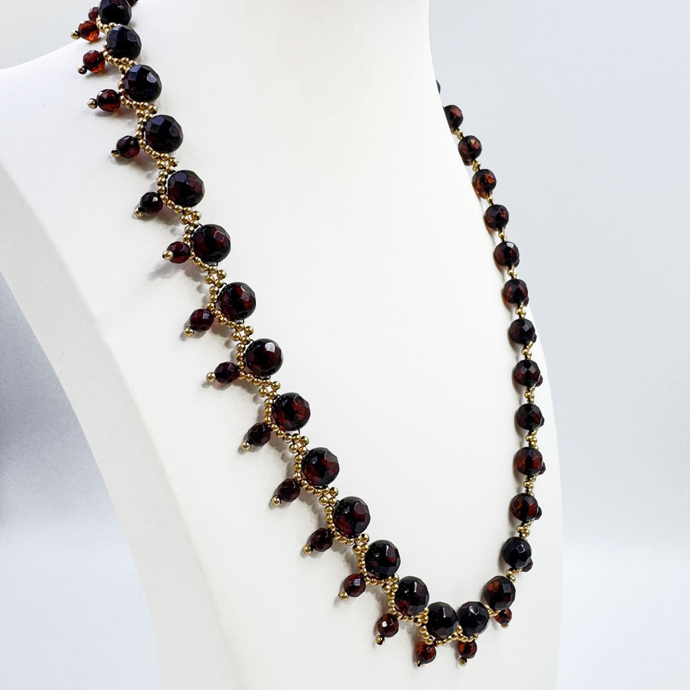 Cherry Amber Faceted Round Beads Necklace 14K Gold Plated
