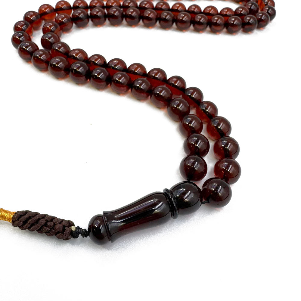 Natural Baltic Amber Cherry Color Islamic Prayer Beads Round Shape 9,5 mm 89 beads