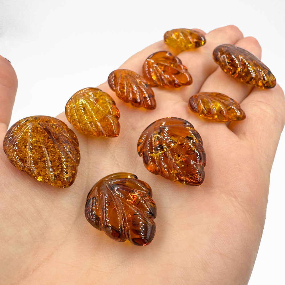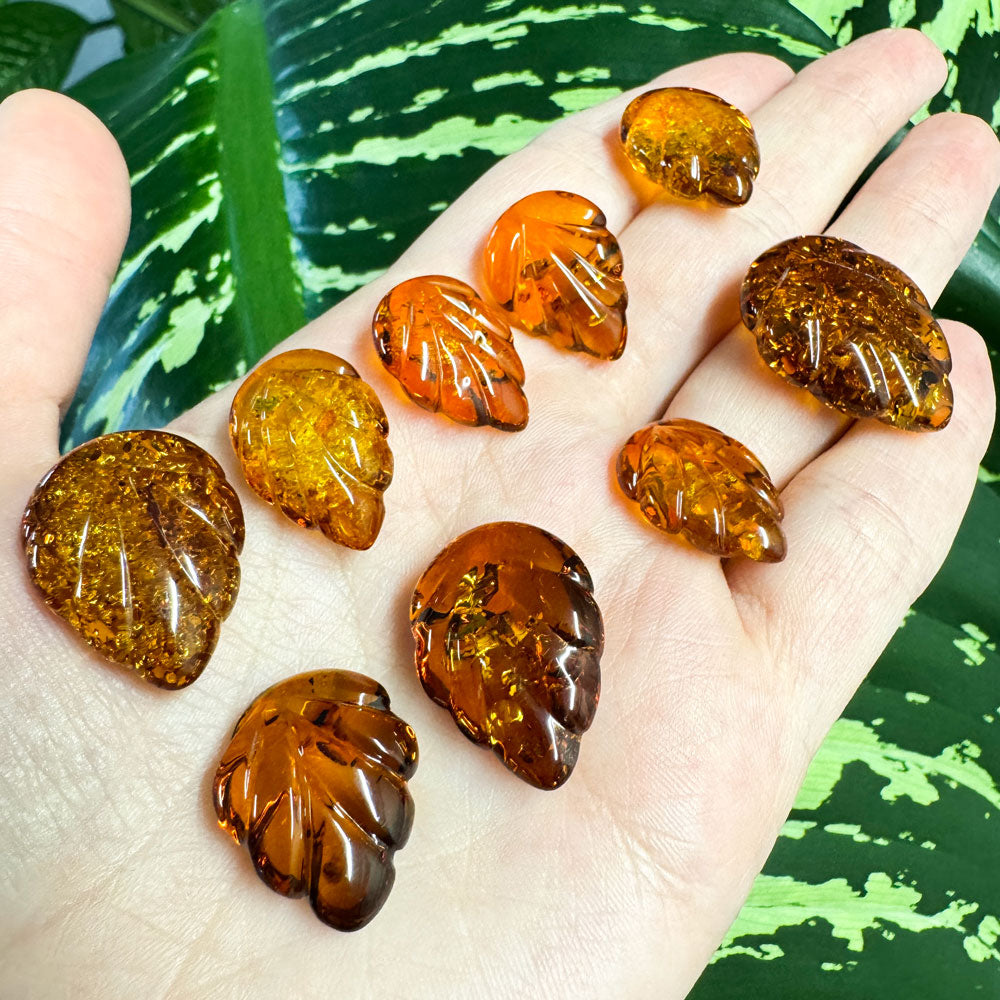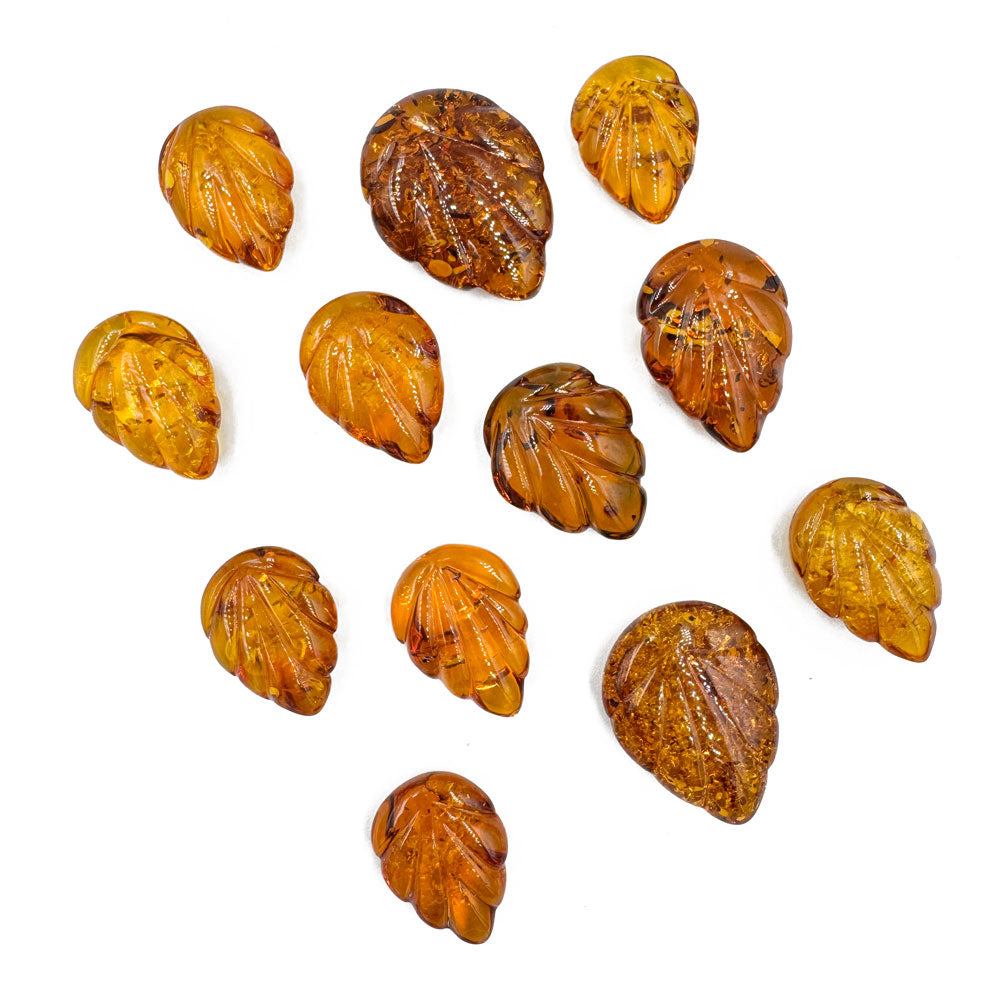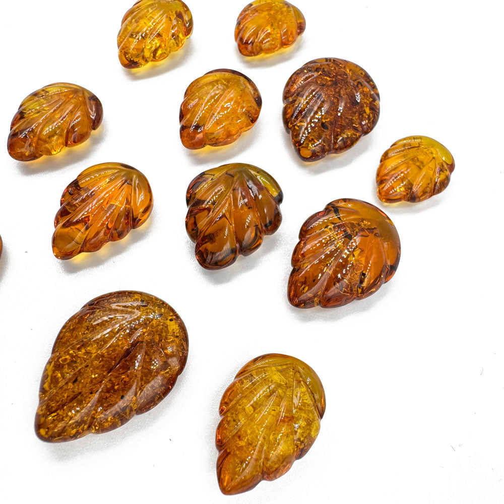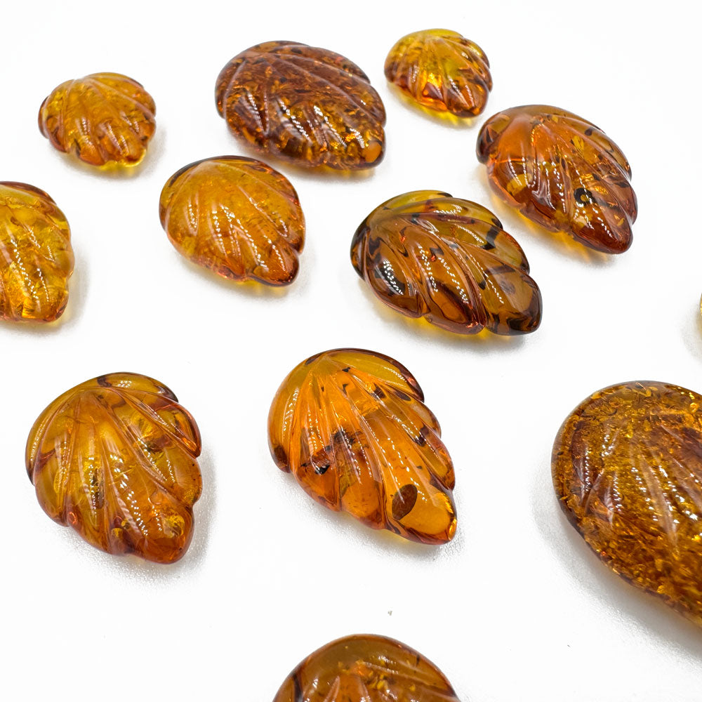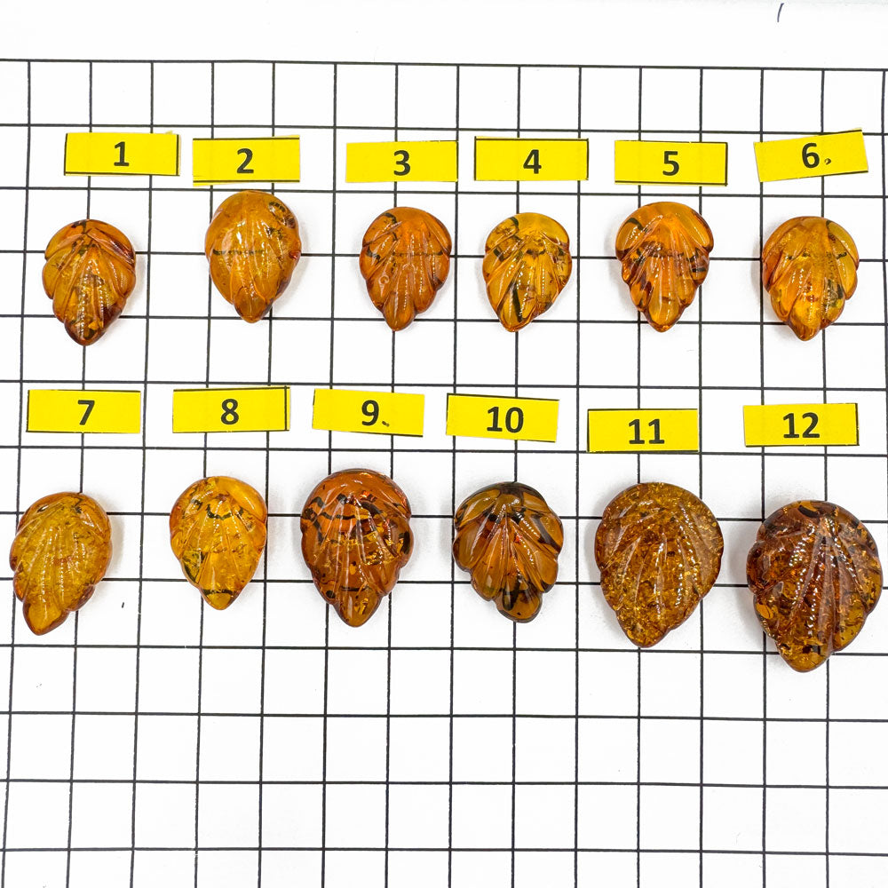 Natural Baltic Amber Cabochons, carved puffed drop shape cognac color.