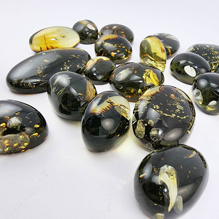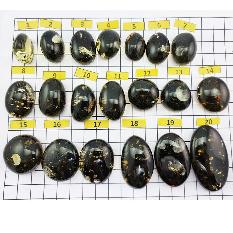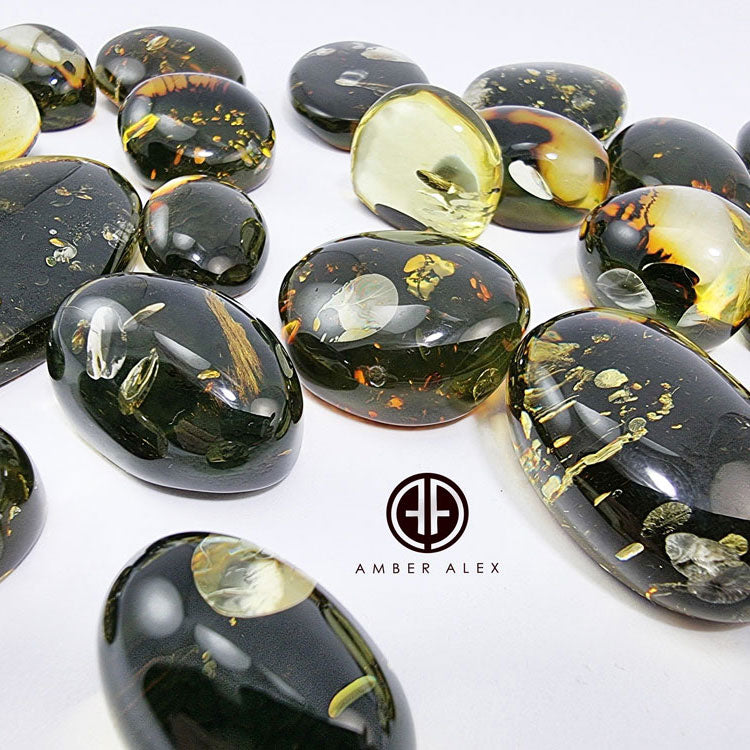 "Earth Stone" Baltic green color amber free shape cabochons