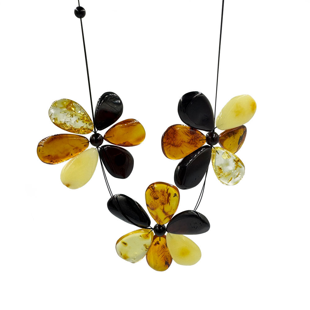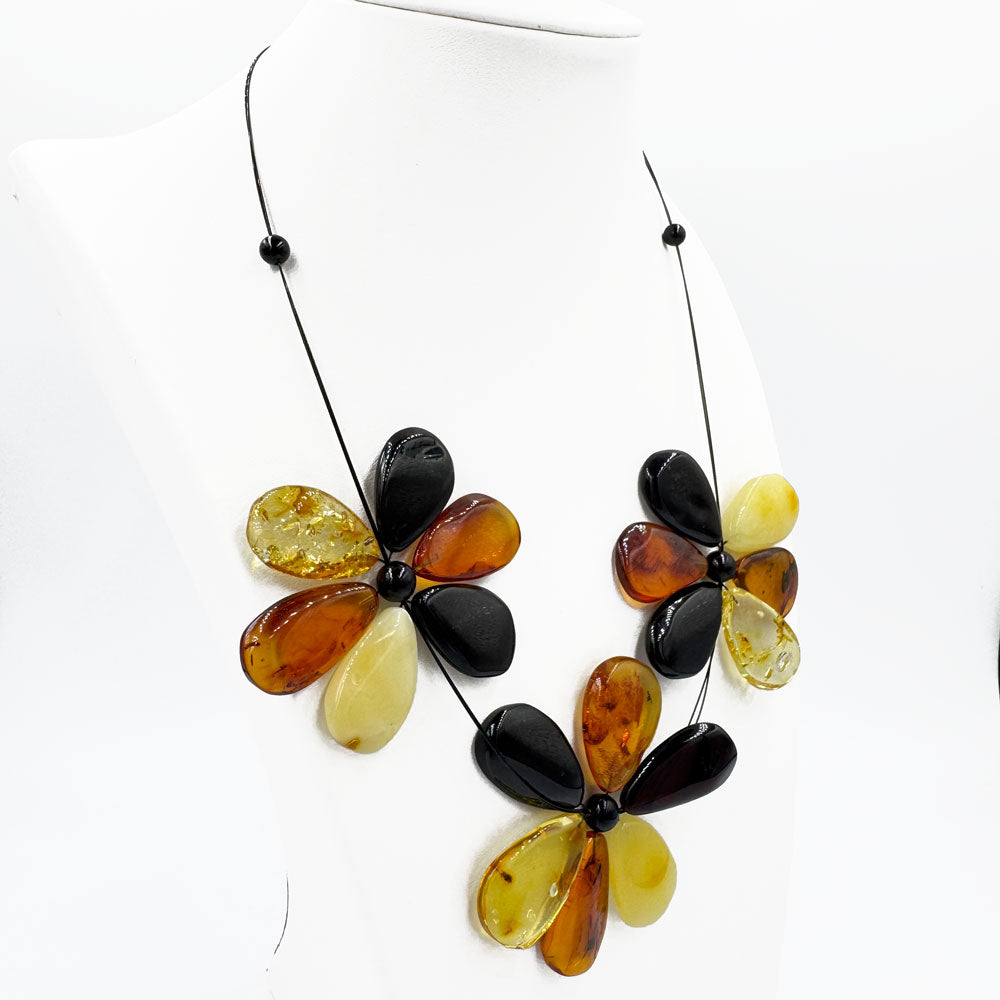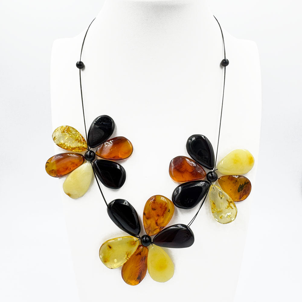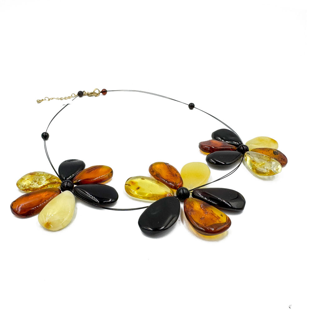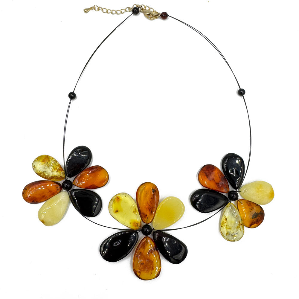 Flower Multi-Color Amber Necklace 14k Gold Plated