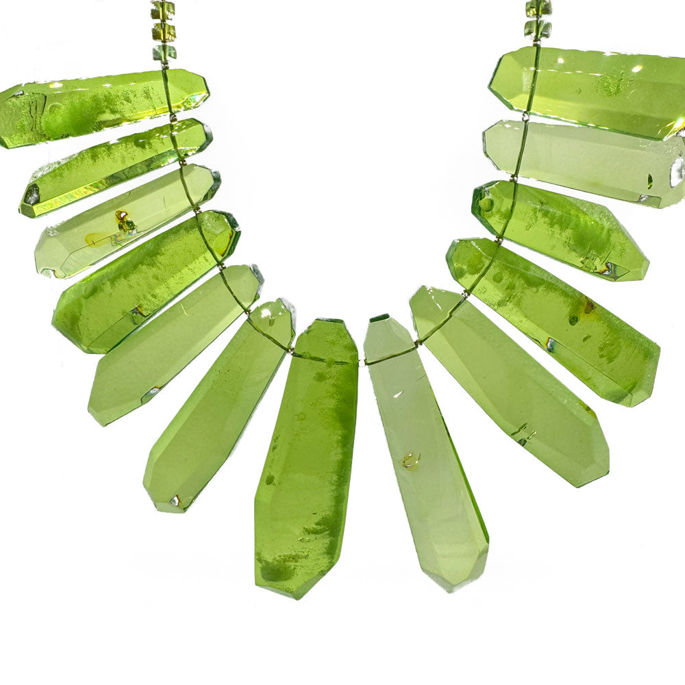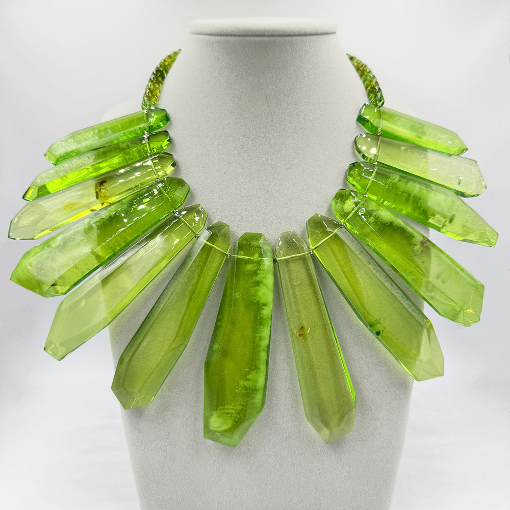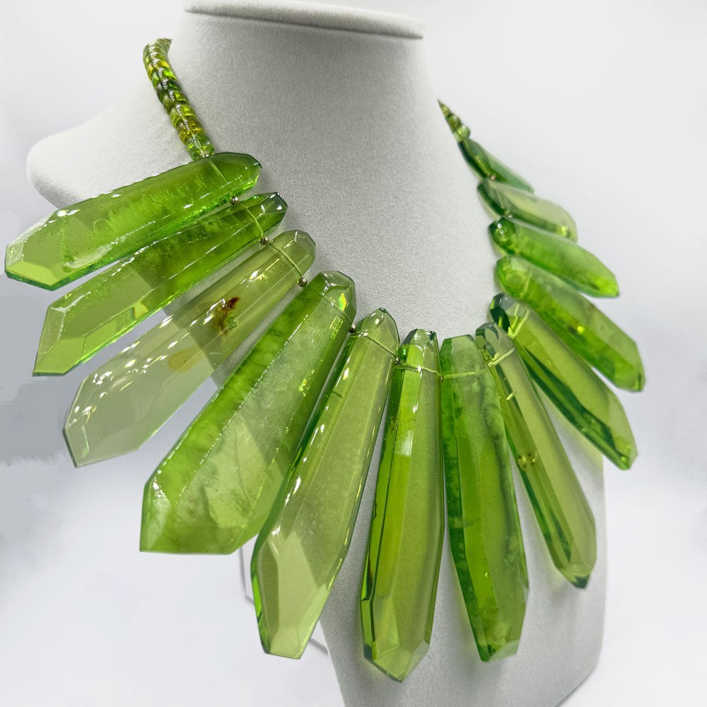 Green color Caribbean amber beads necklace Green color Caribbean amber, crystal shape beads Green color Caribbean amber, tablet shape beads Sterling silver 100% nickel and...