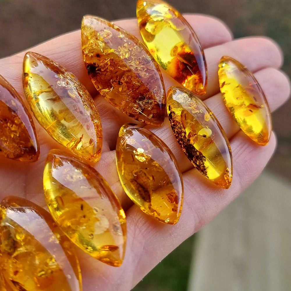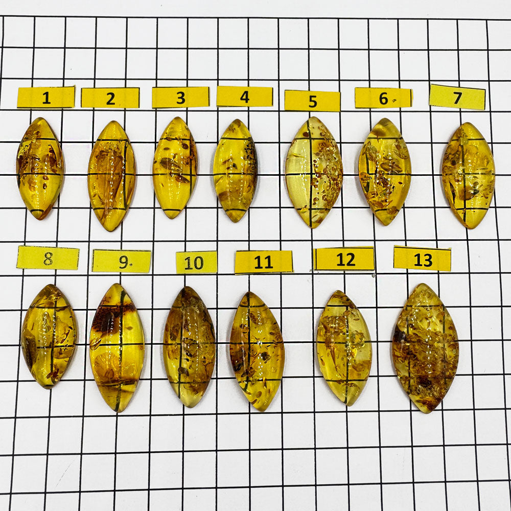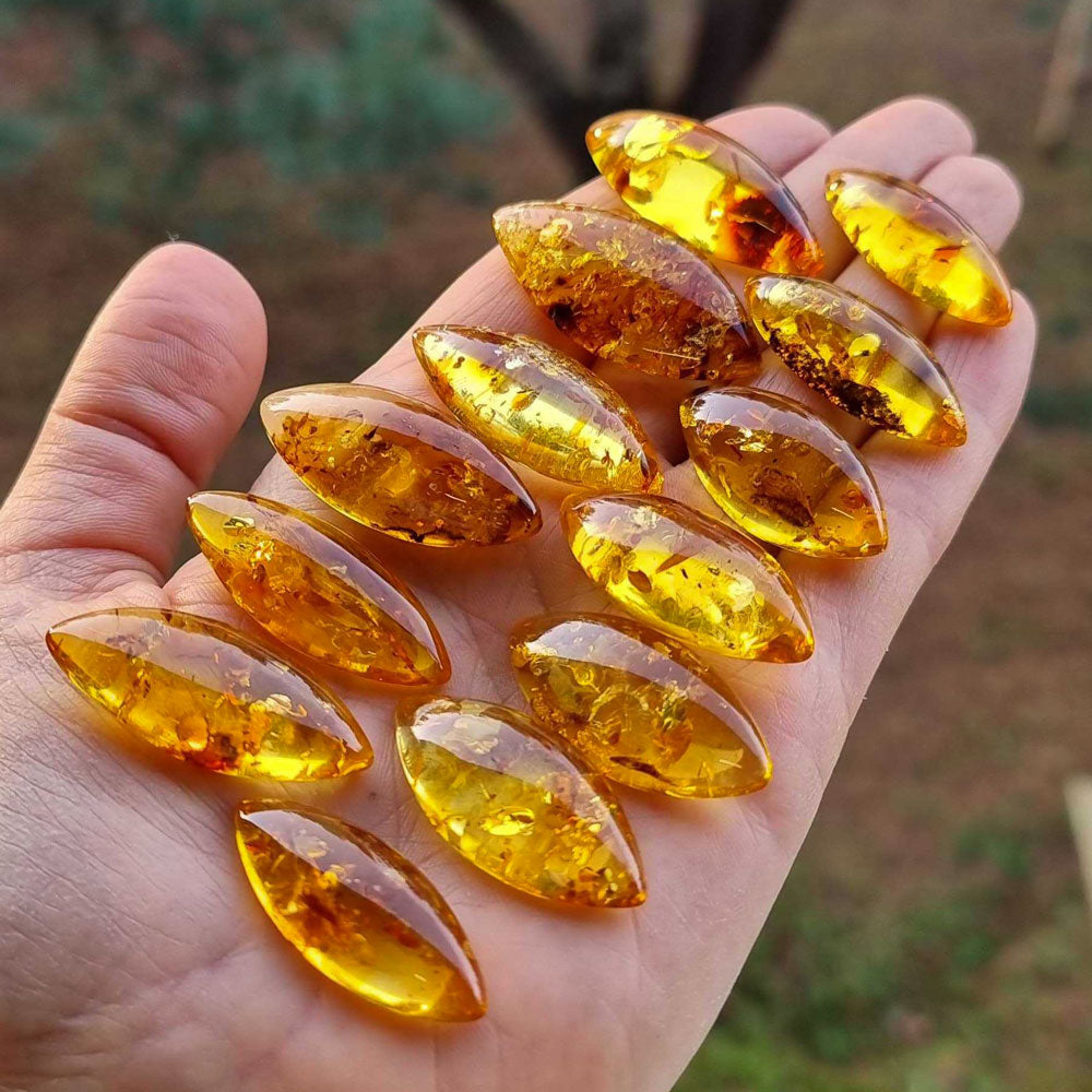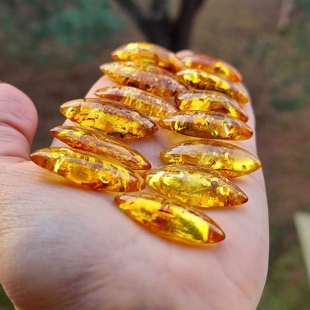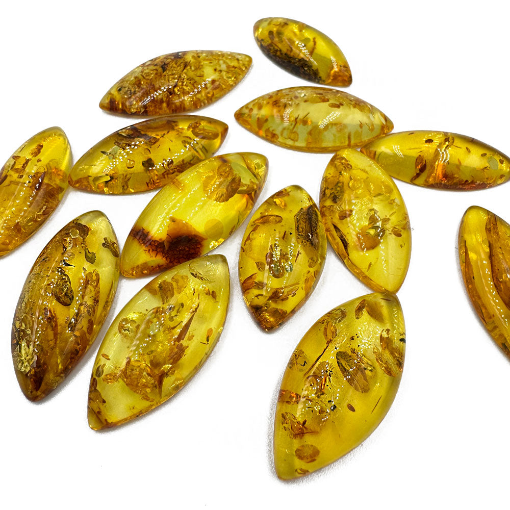 Natural Baltic light cognac color amber handmade marquise shape cabochons