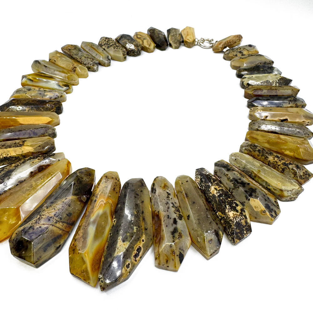 Milky Fossil Amber Faceted Tumbled Stone Beads Necklace