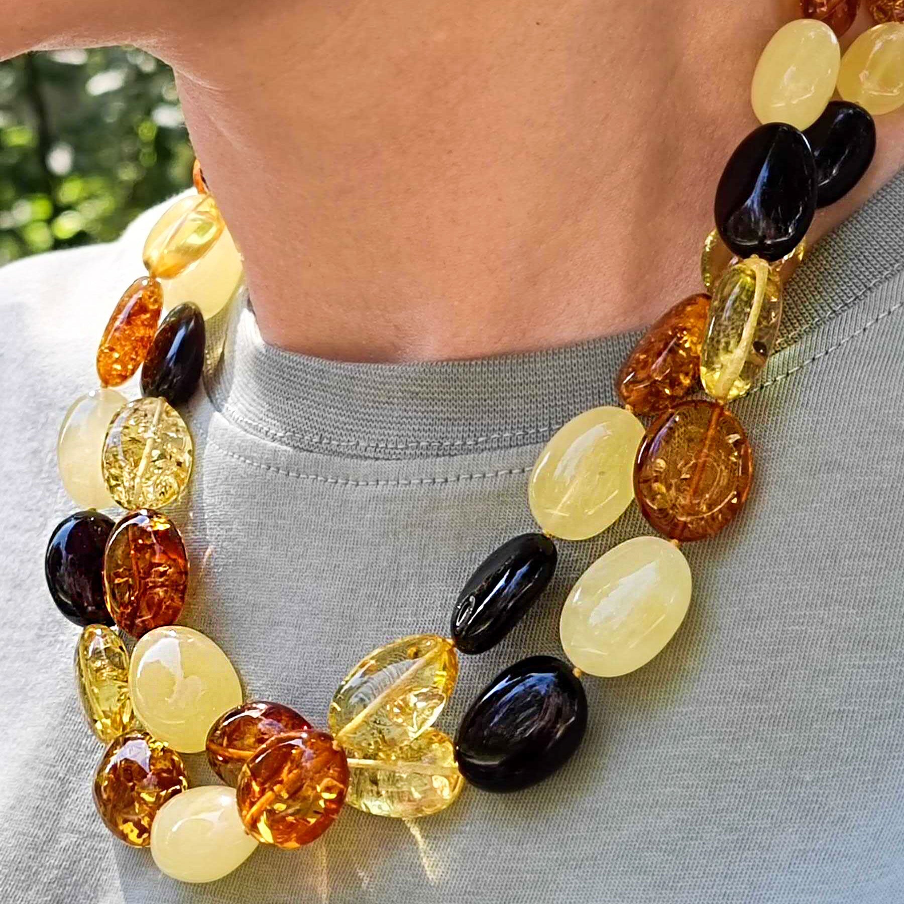 Natural Baltic Amber Multi-Color nugget Beads, beaded necklace