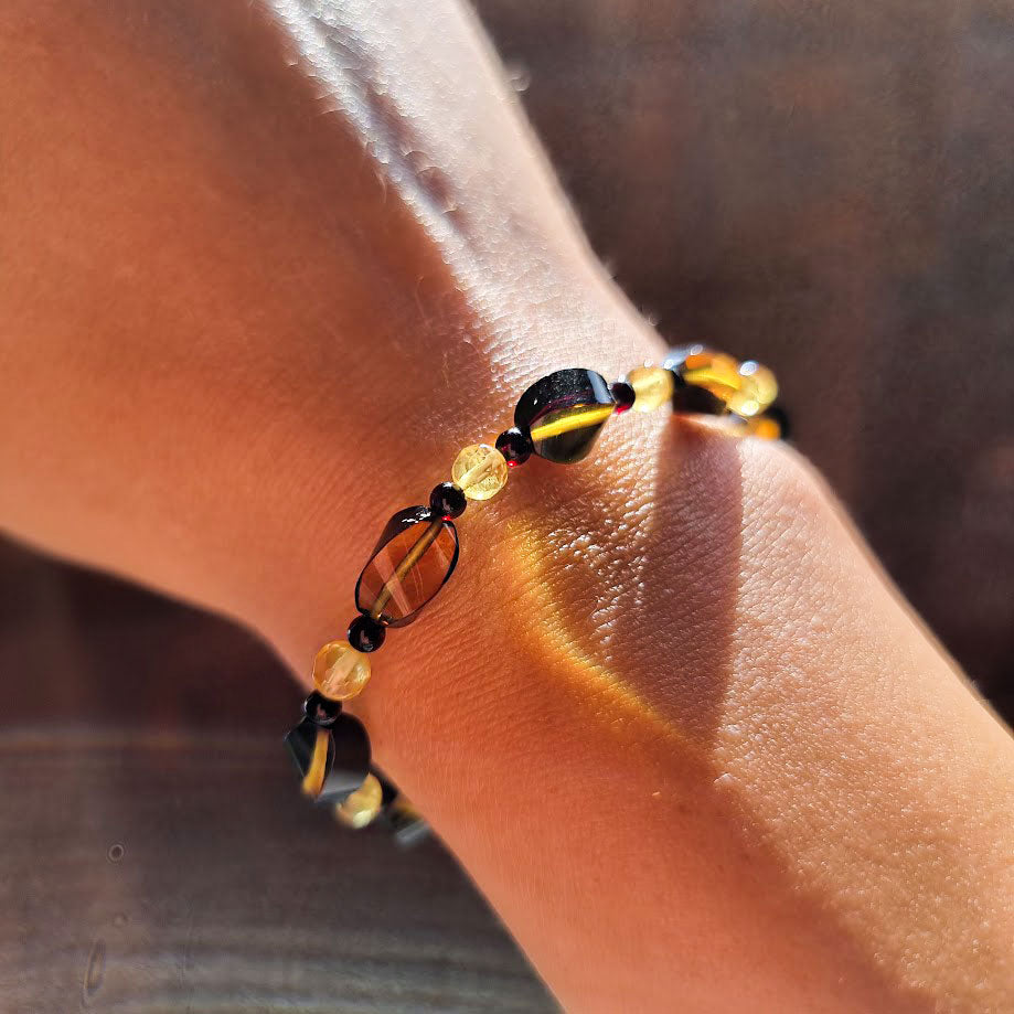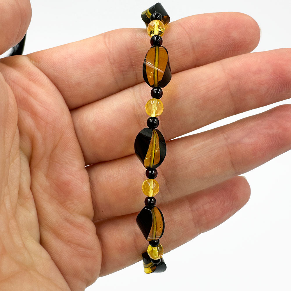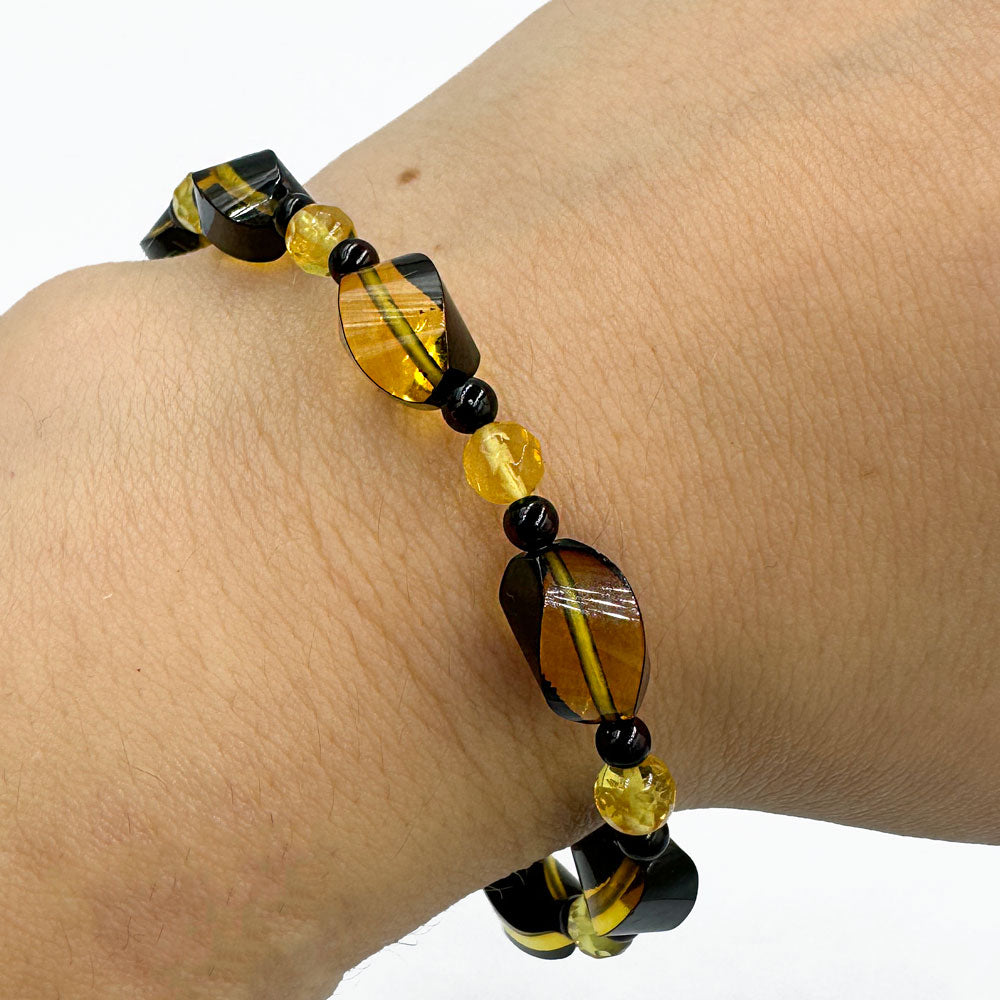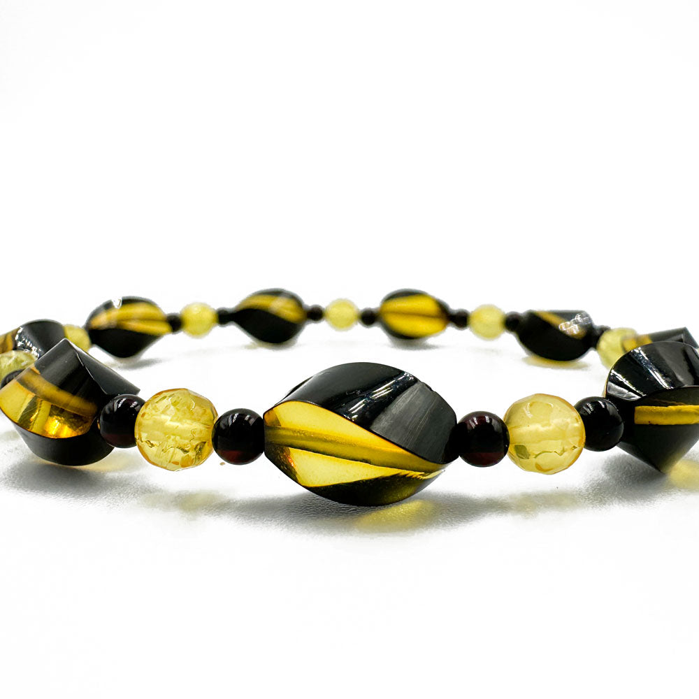 Multi_color color Baltic amber beads stretch bracelet.