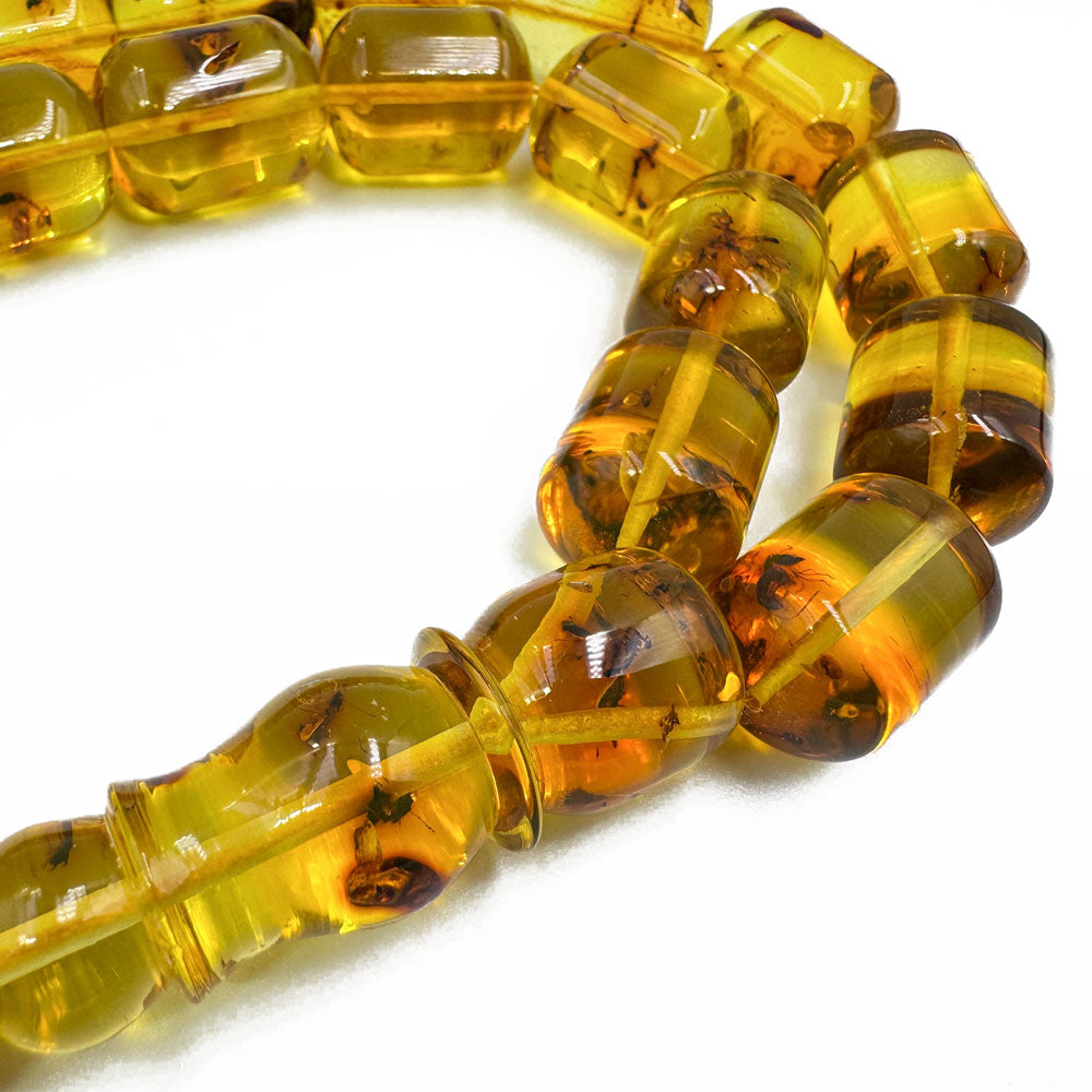 Natural Caribbean Amber Green Color Islamic Prayer Beads Barrel Shape 13.5mm 33 beads