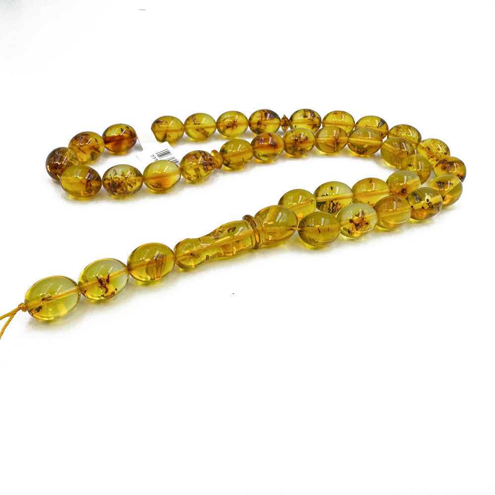 Natural Caribbean Amber Green Color Islamic Prayer Beads 33 olive Shape 13x10 mm