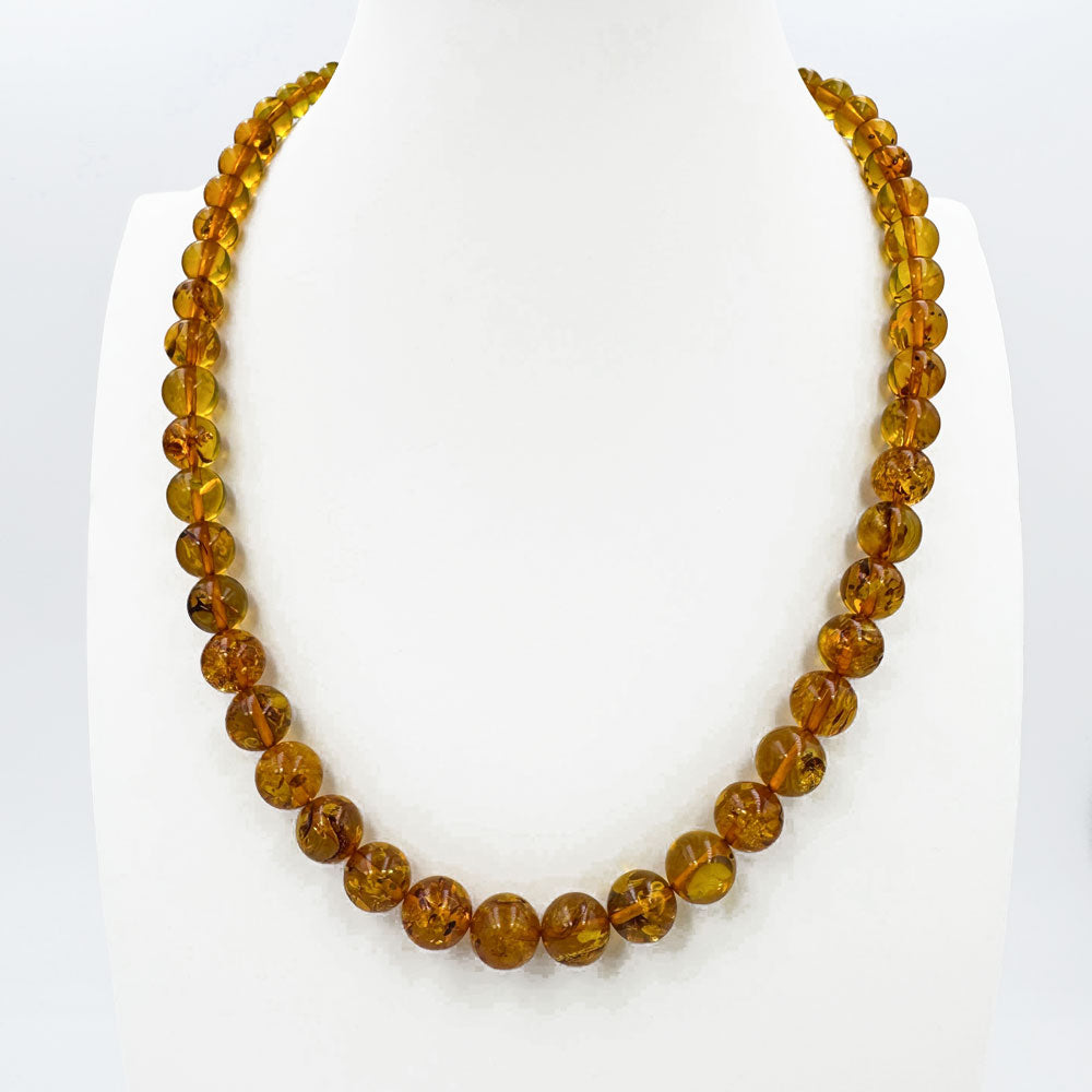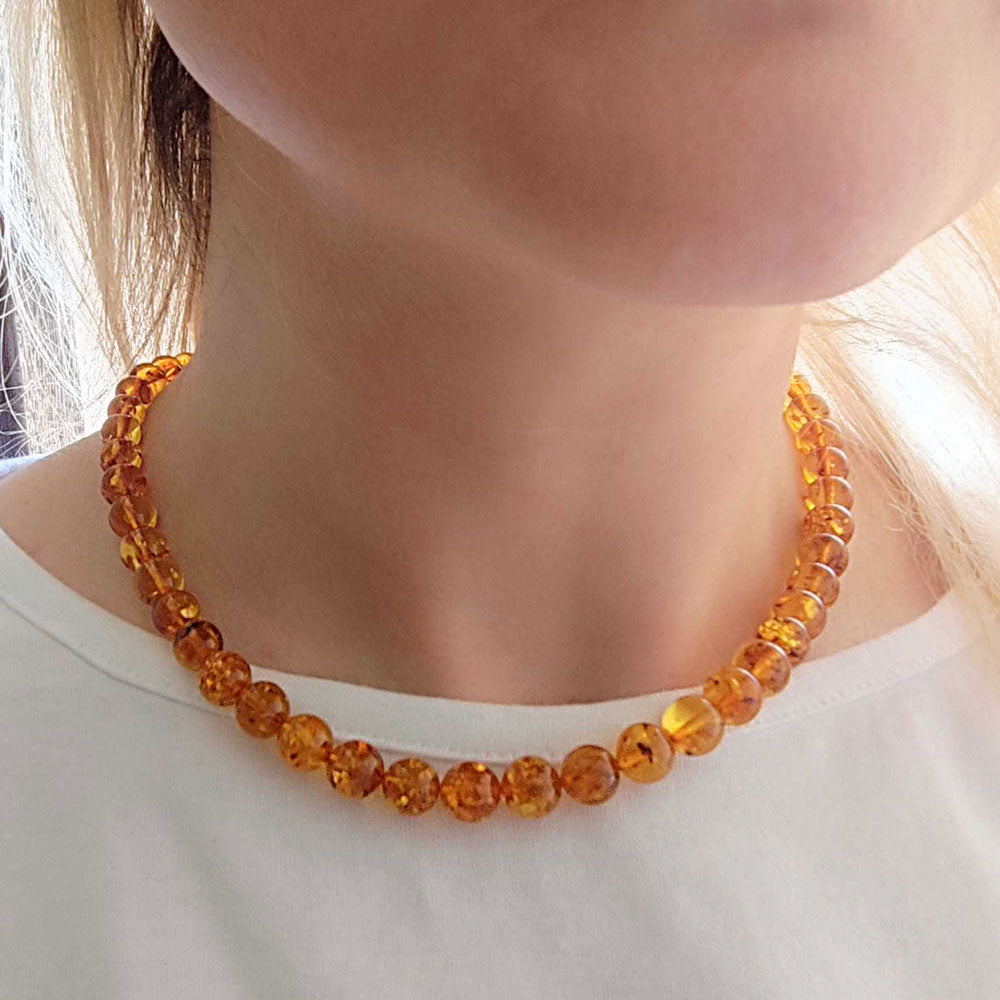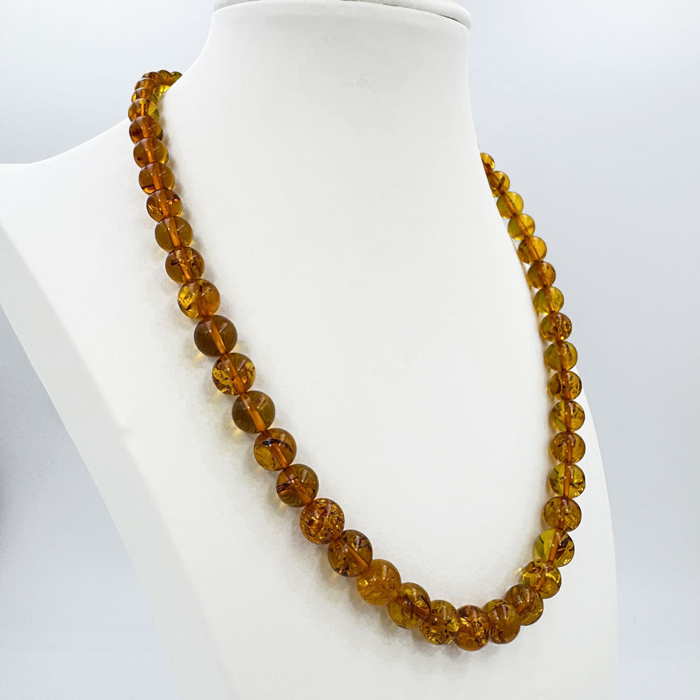 Cognac Baltic Amber Round Beads Necklace