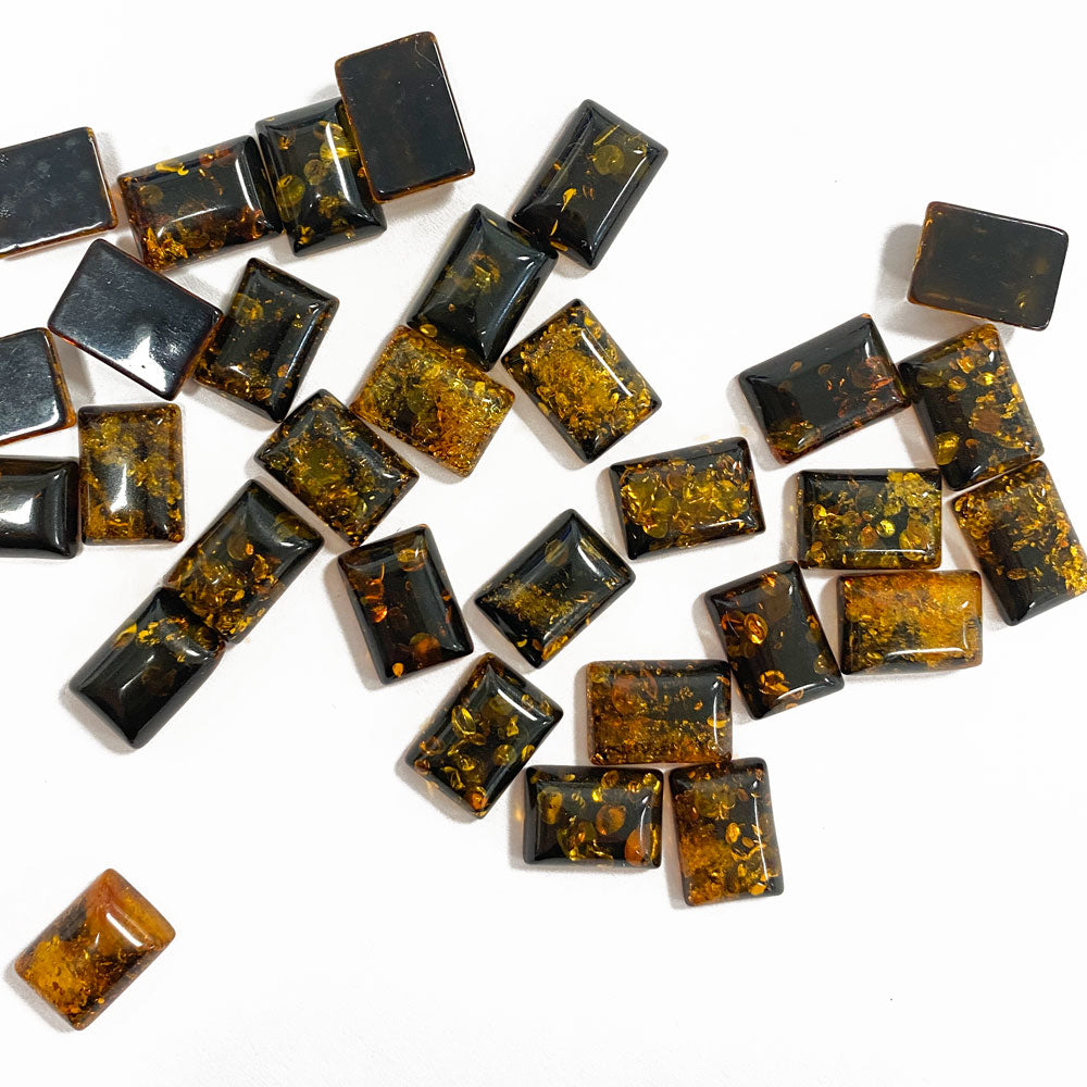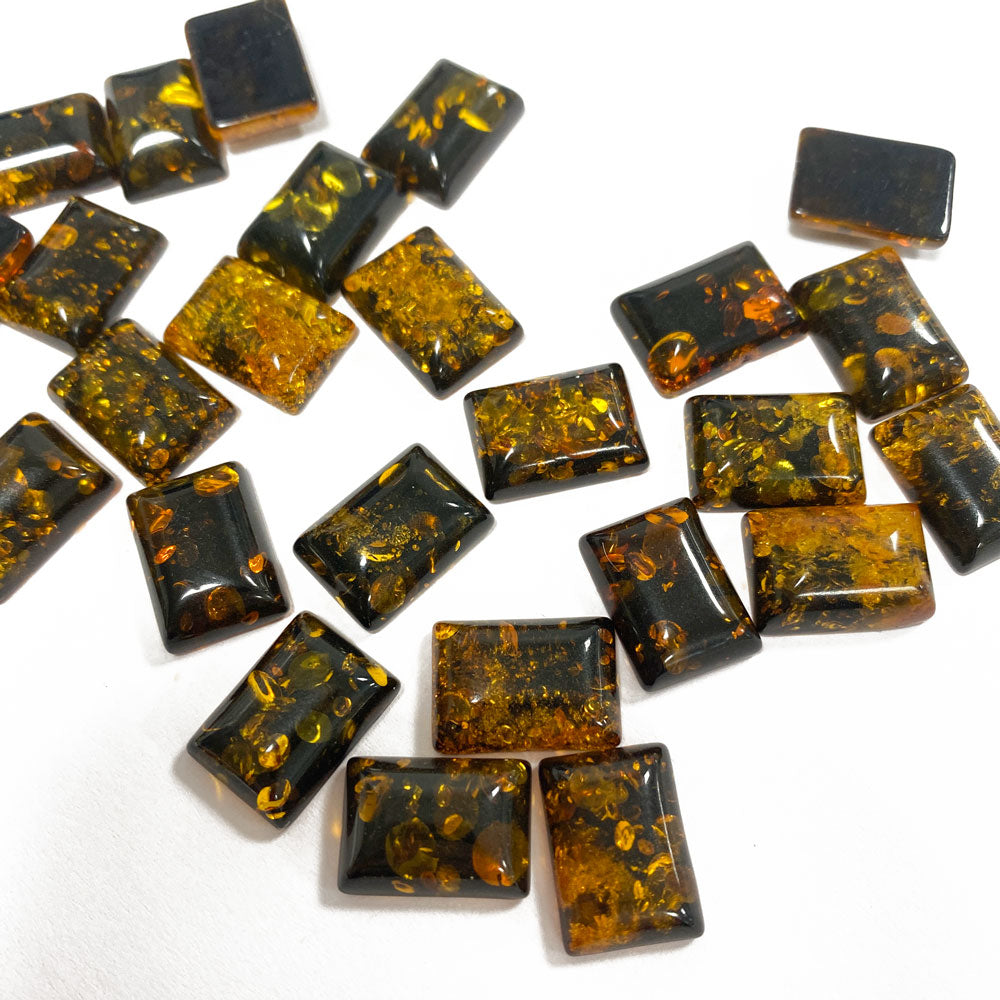 Rectangular Shape Green "Earth Stone" Calibrated Cabochon Genuine Baltic amber Green "Earth Stone" color Black bottom cabochons The price given per unit