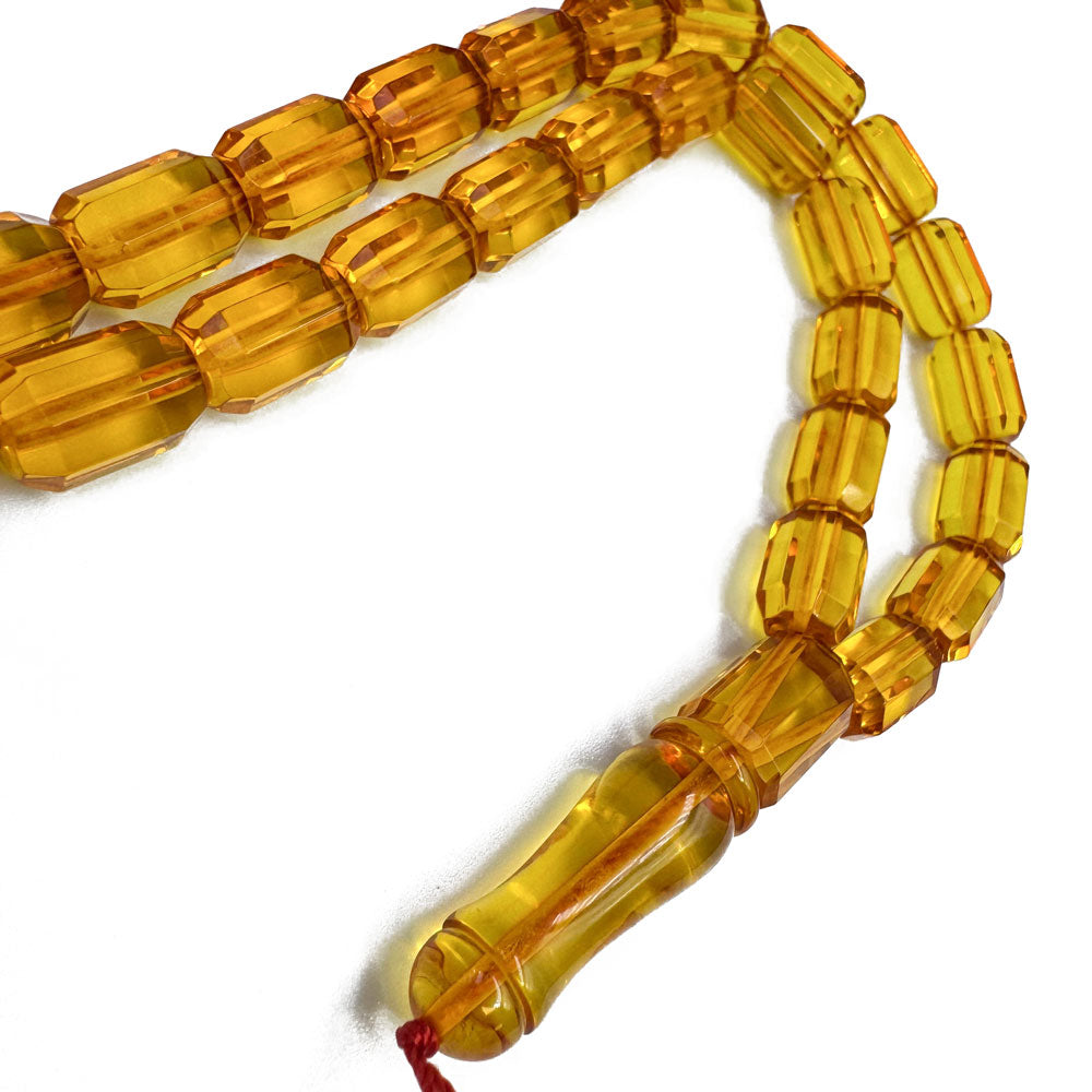 Transparent Amber Faceted Barrel Shape 7.5 mm Islamic Prayer Beads
