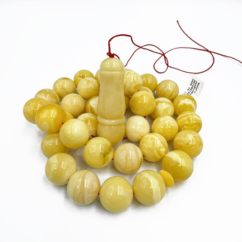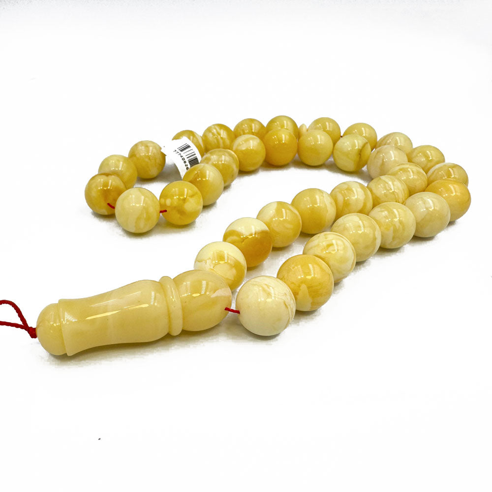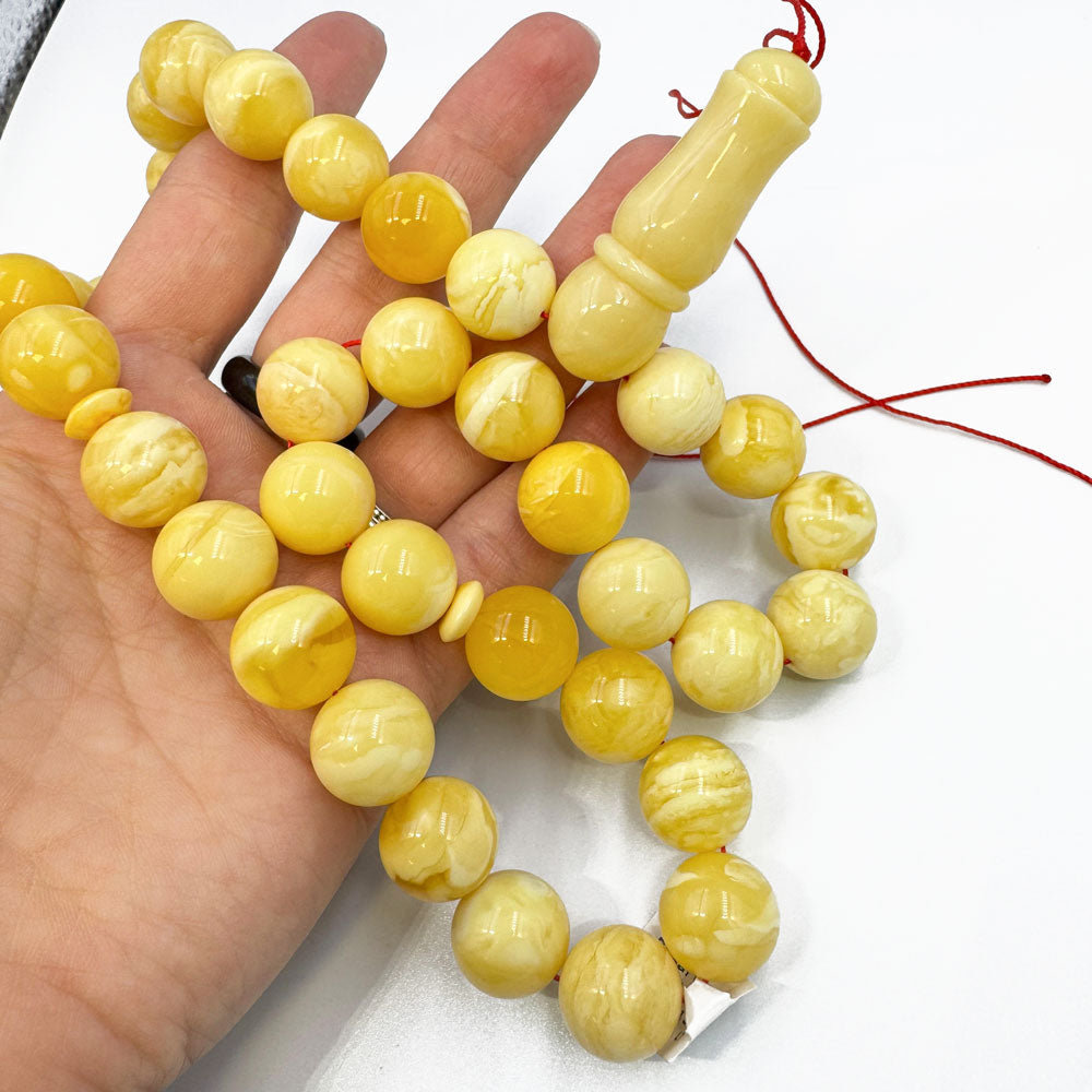 Natural Baltic Amber White With Yellow Color Round Shape 14.5 mm 35 beads Islamic Prayer beads.